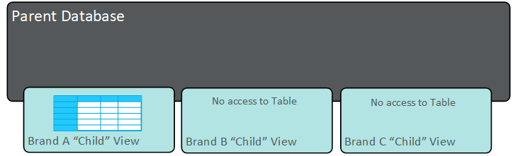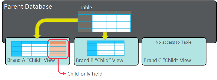 However, in some situations, you may want to share the same general table architecture, but you want only a subset of records from a given table to be available for each Child system, and / or they may want certain values for a specific field to be Child-specific. For example, multiple brands may have the same order entry system which allows them to utilize the same table structures to store that data, but you may want brands to have access only to orders and items carried out for the brand in question. Additionally, brands may sell the same items, but pricing on those items may be different by brand, and you may want to make sure that the price of an item is unique by brand.