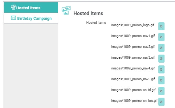 Lastly, you would select the Hosted items asset, and review the list of images. You can click the delete icon next to any images that you want to exclude from the upload process.