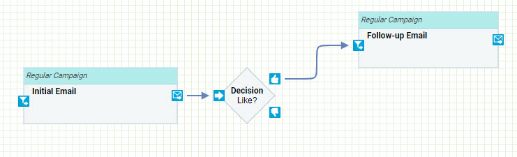 Drag a second Campaign: Regular item and drop it onto the canvas somewhere to the right of the Decision object. This Campaign represents the follow-up campaign.