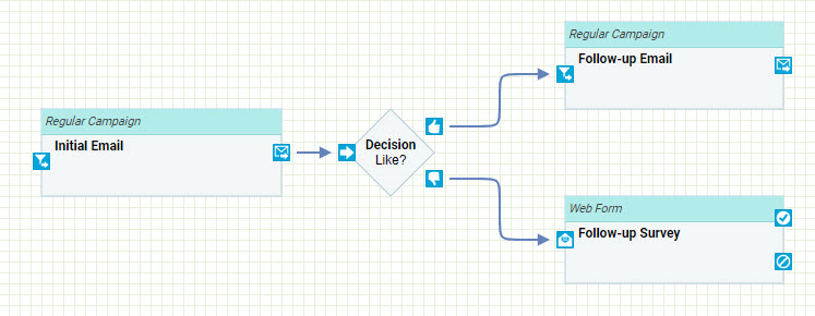 In this example, your Program will represent an initial email marketing campaign followed by a decision point. If the recipients liked what the first campaign had to offer, then they would receive a follow-up campaign. Alternatively, if recipients disliked the initial campaign, they would be sent a survey form.