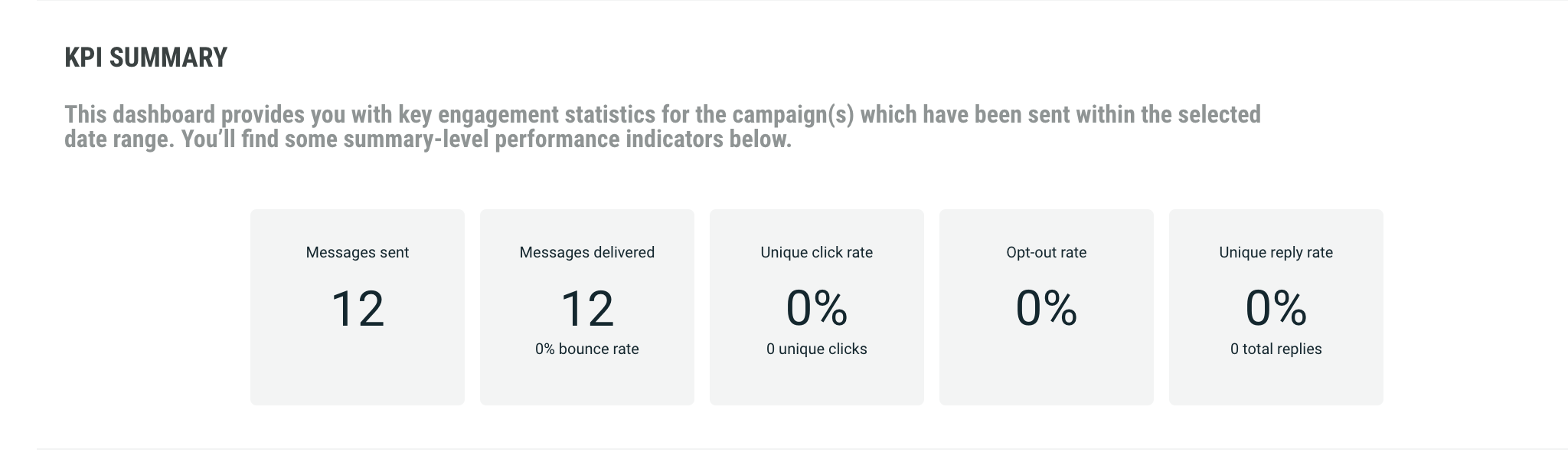 The KPI Summary dashboard provides key engagement statistics for the selected campaign:
