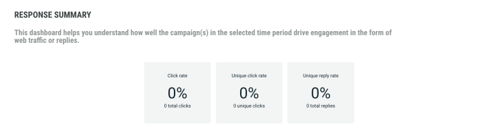 Response Summary widget helps you understand how well the campaign drove engagement, such as web traffic or replies, during the selected time period.