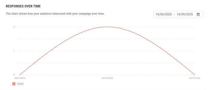 Responses over time widget is a time line of click and reply activities showing how these activity vary over the selected time period.