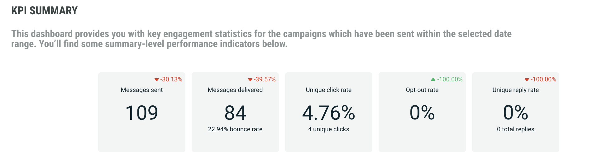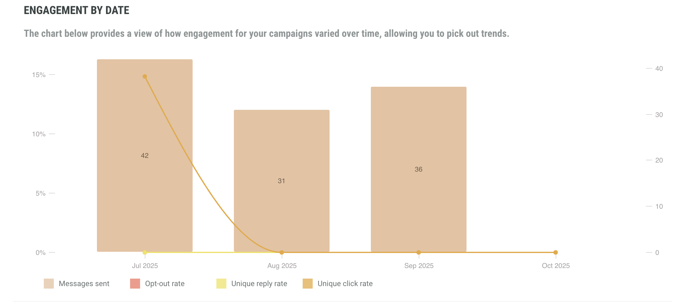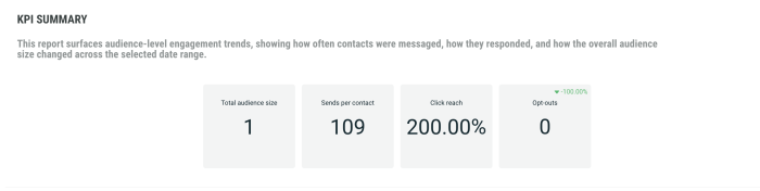 - Percentage of opt-outs — how many of the delivered messages resulted in an opt-out