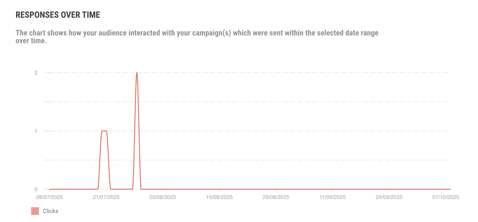 The Responses Over Time is a time line of how your audience interacted with your campaign over the selected time period, including clicks and replies.
