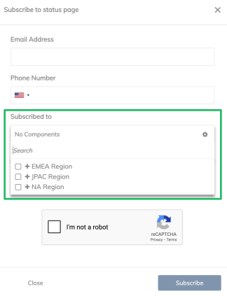 In the next input box you can choose the Components you want to subscribe to. This is simply the regions: EMEA, JPAC or NA. You can choose 1-3 regions as required.