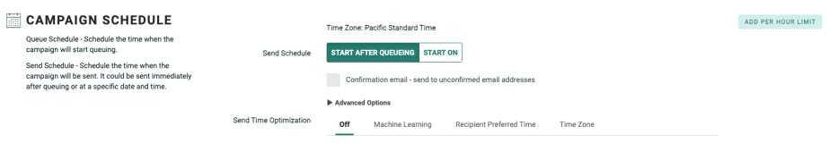 2. Beneath Send Schedule, click Advanced Options to expand this section.