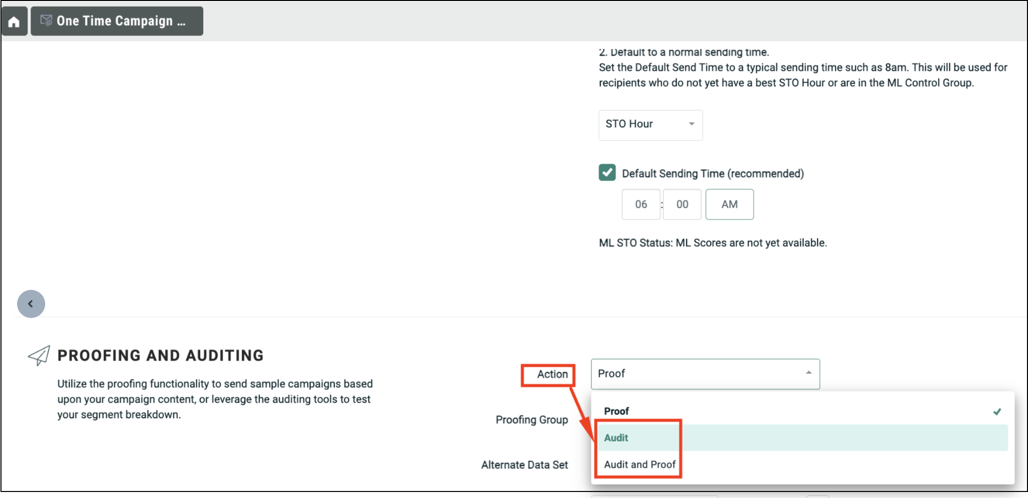 Set a Default Sending Time. Recipients will receive your campaign at the default time if their STO Hour is empty. This includes the ML Control Group.