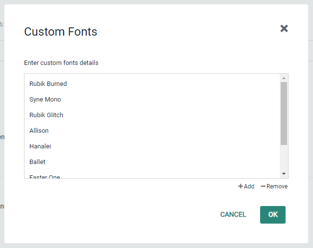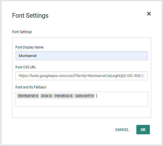 One at a time, type or paste the name of the font, click Enter on your keyboard, and then type the names of the fallback fonts, clicking Enter on your keyboard after each one. Click OK when you are finished.
