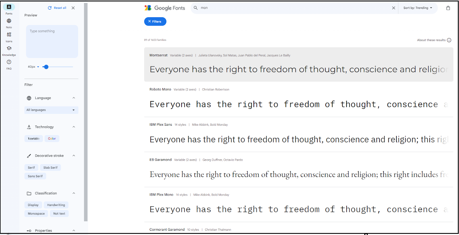 From https://fonts.google.com/, search for and select the font you'd like to use.