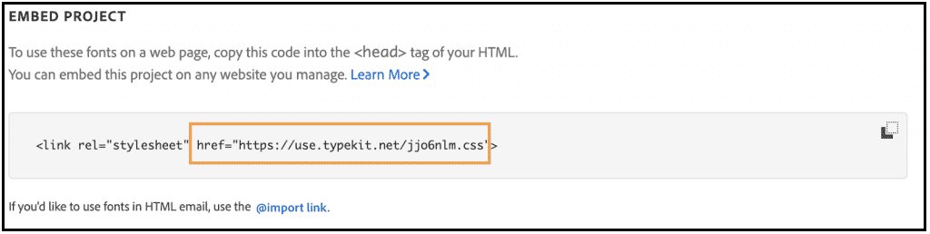 Copy the URL inside the href field for the project to grab the CSS file.