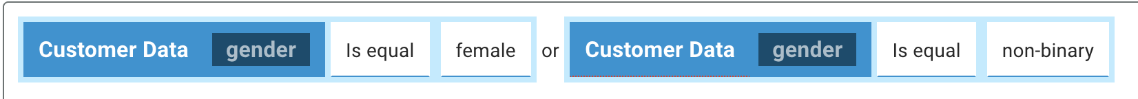 | Number | ((user.profile['customer_id:string']) ?: '')matches'.+(40|41|42|43|44|45|46|47|48|49)$' | n/a - regex operators are not supported in auto-format mode | Checks if the customer ID ends in the digits specified |