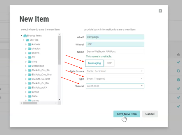 Webhooks are a channel, just like Email or SMS campaigns, so the basic creation settings are exactly the same as other campaigns.