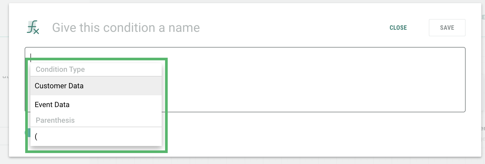 Selecting Event Data allows you to build conditions based on customer behaviors, such as interactions with your campaigns or specific actions they take
