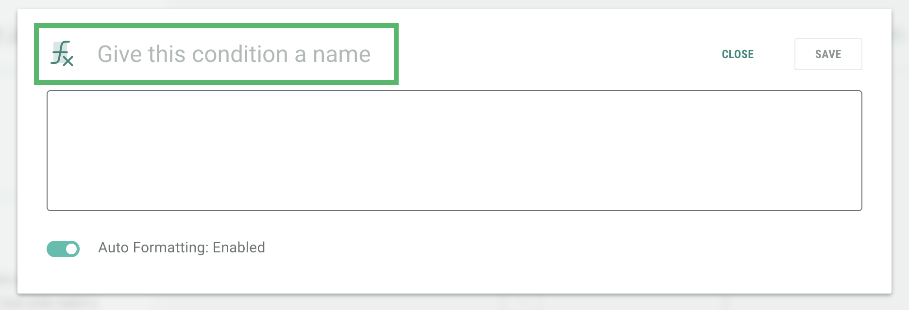 Auto-Formatting Enabled: also known as the Basic Editor. This mode will provide prompts and dropdowns to help build each expression. Best used for simple expressions.