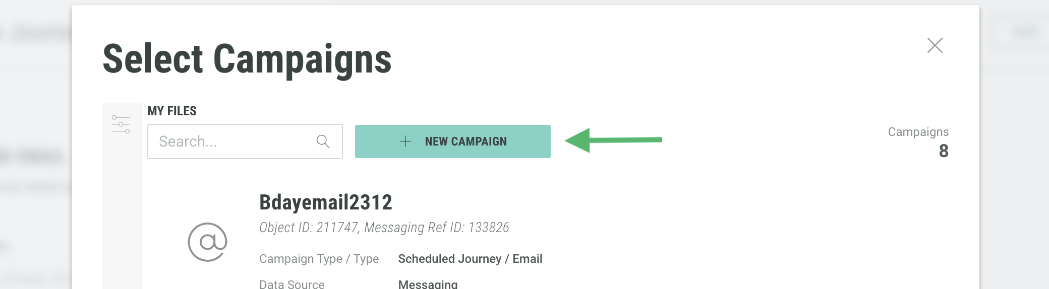 From within the new panel that appears, click New Campaign.