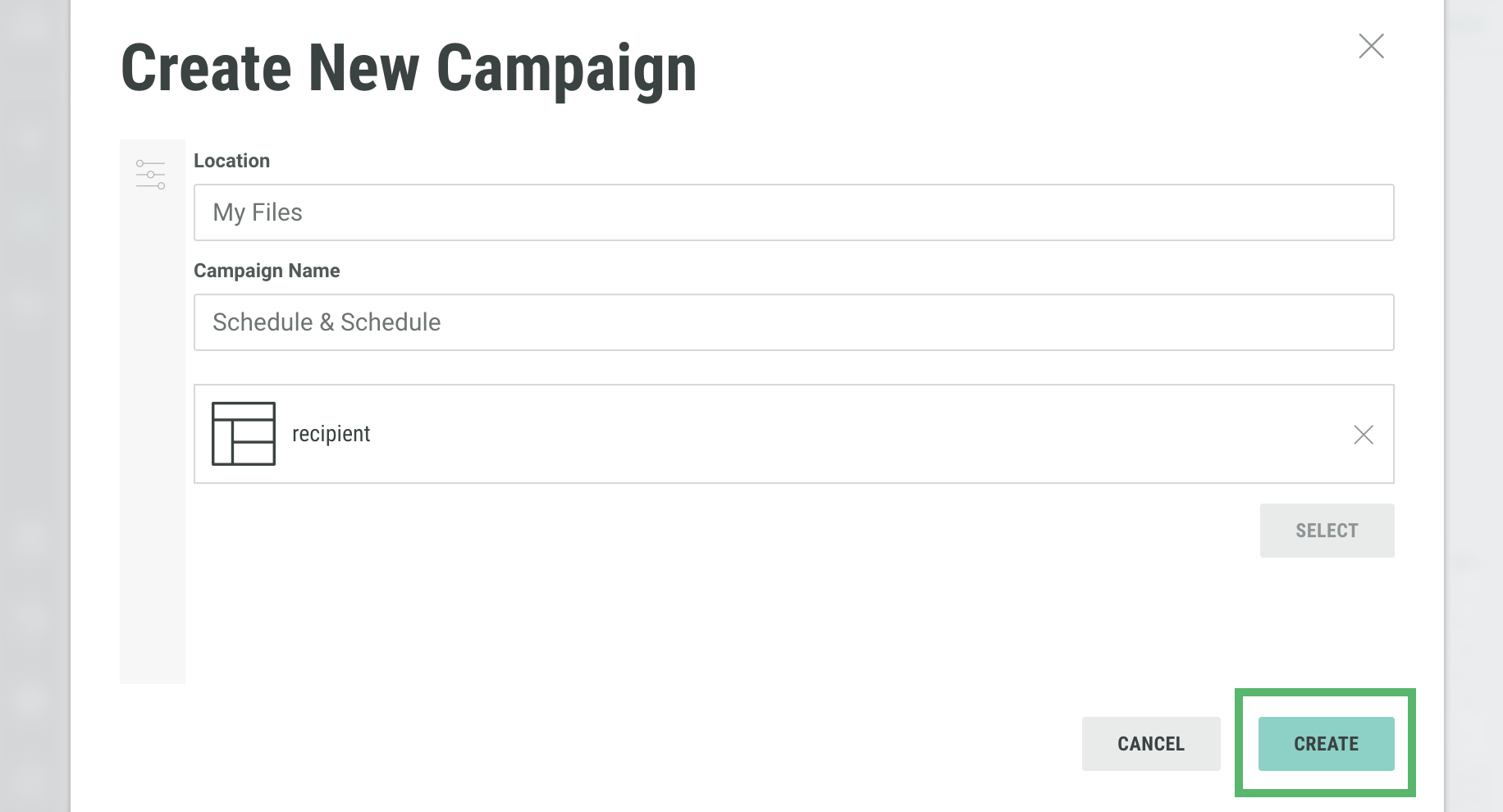 To create a Campaign from within your Journey, click on the Send step and, under the Campaign settings, click Select.