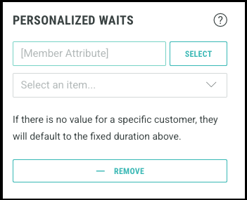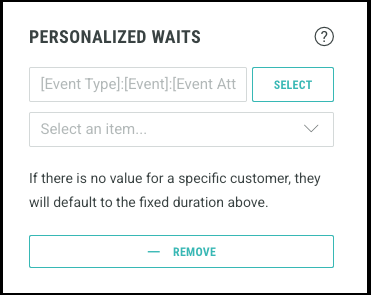 You can use personalized waits to replace the default wait time with a tailored duration based on a customer specific data or events. You can select an attribute from the customer database table or event attributes to personalize the experience.