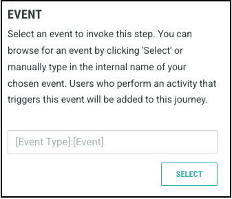 Based on the event data required for your Journey steps, you must select the appropriate event in the Event field within your Step settings.