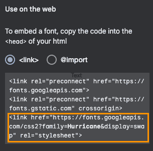 https://fonts.googleapis.com/css2?family=<b>Hurricane</b>&display=swapTypekit