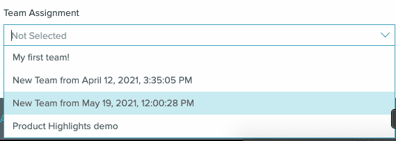 - Locate the Team Assignment drop-down menu. Select a team from the menu.