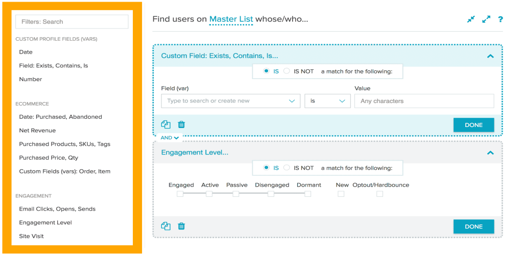 You can create two different types of lists with Audience Builder: a natural list or a smart list.
