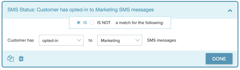 Note: When creating an SMS audience, the SMS Consent Status and SMS Consent (Legacy) filters should not be used together.