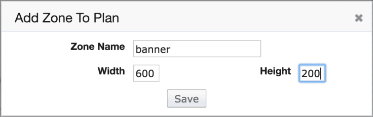 • When creating a zone, you'll specify the Zone Name as well as a Width and Height (in pixels). This is the default size the ad will be displayed in all templates. To enable responsive sizing (e.g. for mobile) or additional styles, see the Place Invocation Codes section below. Regardless, ensure that your template code will accommodate the specified ad size(s).