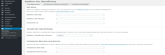 - Select Settings from the Sailthru section of your WordPress Admin menu.