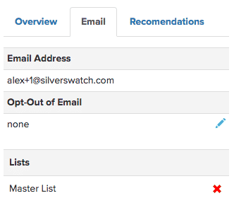 From the email tab you will be able to remove the customer from any current list subscriptions, as well as edit their opt-out status.