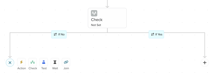- Merging is available after you configure your Check branches. Hover over the icon at the end of the step and select Join.