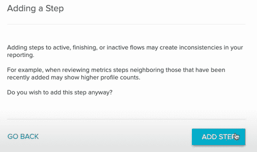 - Select a step. A warning box will appear as adding a step may affect reporting: