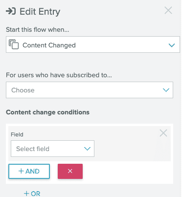 A flowthat includes a Content Changed entry step can also include a Remove Content Watch Action step.