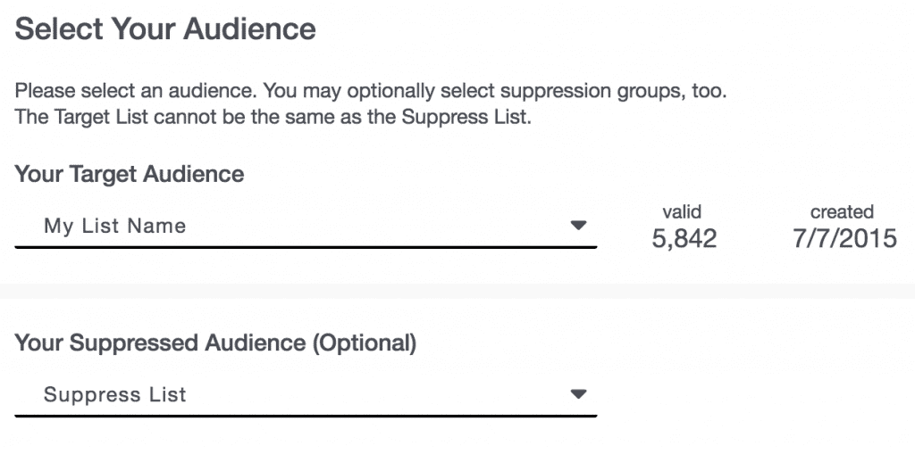 - Once you choose Your Target Audience, you will have the option to exclude recipients via the Your Suppressed Audience drop down.