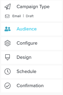 After creating your new campaign and choosing the Regular Campaign type, you'll see the menu on the left which will guide you through next steps. You can always use this menu to move to any section if you need to add information in a different order.