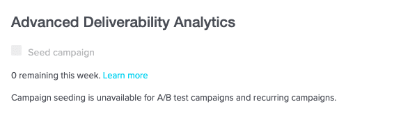 - Under Advanced Deliverability Analytics, select Seed campaign to enable selective seeding.