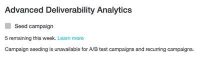 When you add selective seeding to your campaign, you'll see the status of your ability to seed.