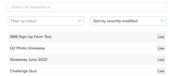 • Search -  Search for a specific experience by name or to search for experiences containing a specific word or phrase, for example, giveaway or quiz.