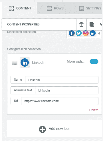 - Select the Icon content block from the Content tab and drag it into position. You'll see the placeholder content.