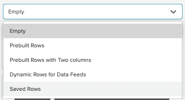 from either the row itself or the row properties menu. - Give your row a name and select Create Saved Row. Your saved row will be available.
