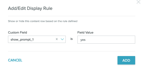 {/if}Then check if your new field is equal to the value you set. Select the Add/Edit Display Rule button to add your check: