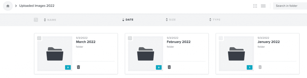 - Create the folders. Images must be uploaded to a specific folder and cannot be dragged and dropped into a folder after upload.