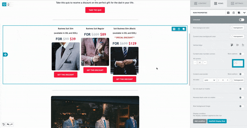 Add Logic in the Editor- To add conditional logic directly in the editor instead of creating custom fields in Setup, select your row and then the Add Condition button to open the editor.
