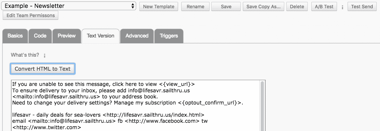 - Click Convert HTML to Text after all your edits on the Code tab are complete. You can then modify the text version as needed. Remember to remove any imagealt tags that appear in the text and update any dates in the text to the day of send. You can also use Zephyr syntax to call the date. Note: Producing a text version of your message not only offers a better experience to users who view the plain-text version of the message, but is also an easy way to help minimize the risk of your email being flagged as spam by recipients' email hosts.