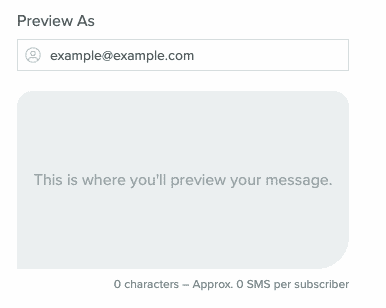 Create a list in Audience Builder before designing your SMS campaign. You can create your SMS message directly in the SMS Campaign workflow and see the same preview as you would in the SMS template builder.