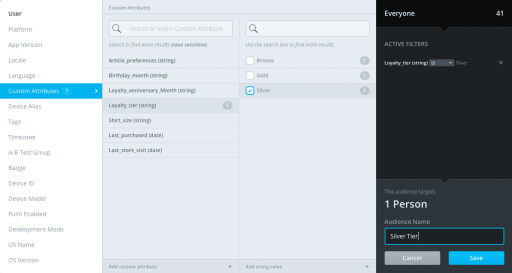 To get started, head over to the Mobile Audience Builder and start a new audience. Select the filters you need, then save the audience. This will become the parent audience for your test groups.