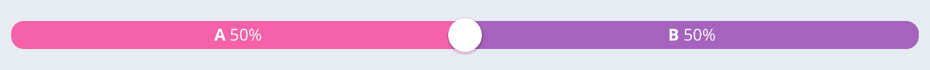 - To determine the proportion of your audience that will be randomly selected to receive each variation, use the AB distribution slider at the top of the window.