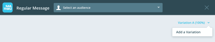 - When creating a new message in the Message Composer, at the top-right, click the arrow next to the default Variation A, and click Add a Variation.