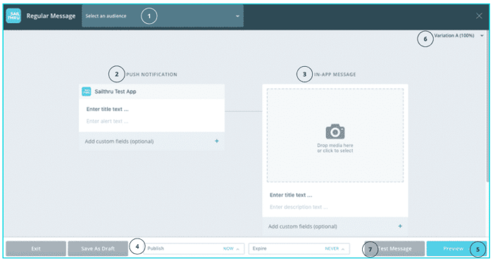 - Test Message button Note: The Test Message button will send your message to your selected audience immediately. Until you're ready for your final send, only attach a test audience to your messaging.