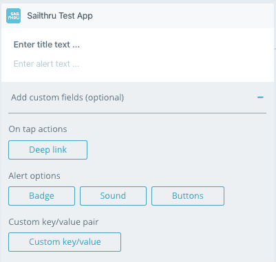 Push Notifications contain text-only information which will show on screen even if the user does not have the app open. Note: Notification titles are supported on all iOS devices. Notification titles on Android devices are supported from v5.7.0 and up. You can also add extra fields such as a badge, sound, category or Custom Key/Value by clicking Add fields.